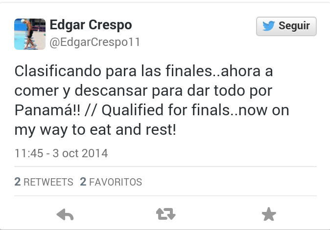 Edgar estará en Panamá por dos semanas y media para luego retornar a los Estados Unidos y de ahí viajar directo a la justa de México 2014.