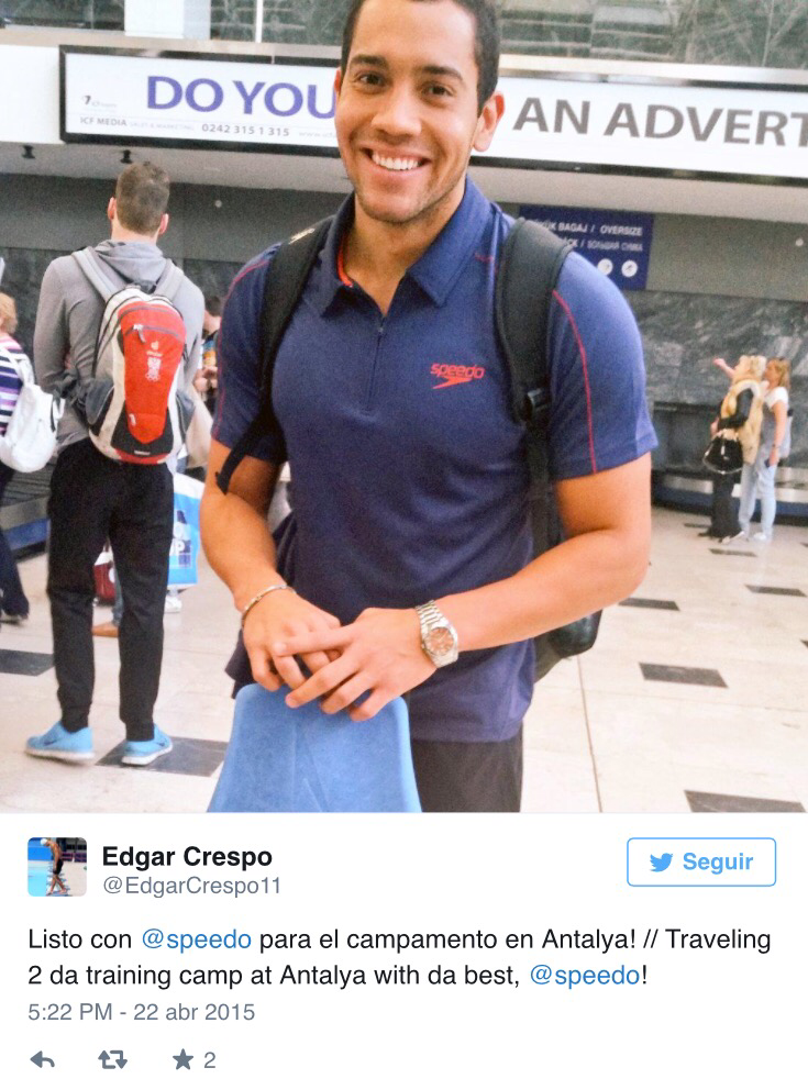 El nadador Edgar Crespo recibirá B/. 12,000 por parte del Comité Olímpico de Panamá, una suma que cubrirá sus viajes y estadías en su ruta de competencias y preparación a los Juegos Panamericanos de Toronto 2015, señaló Camilo Amado Presidente del COP. Edgar Crespo, nadador panameño comprende claramente que en los 100 metros pecho está a 3 segundos y centésimas de una medalla de oro en los Juegos Olímpicos en los 100 metros nado estilo pecho. Y a 2 segundos y centésimas de una medalla de plata.
